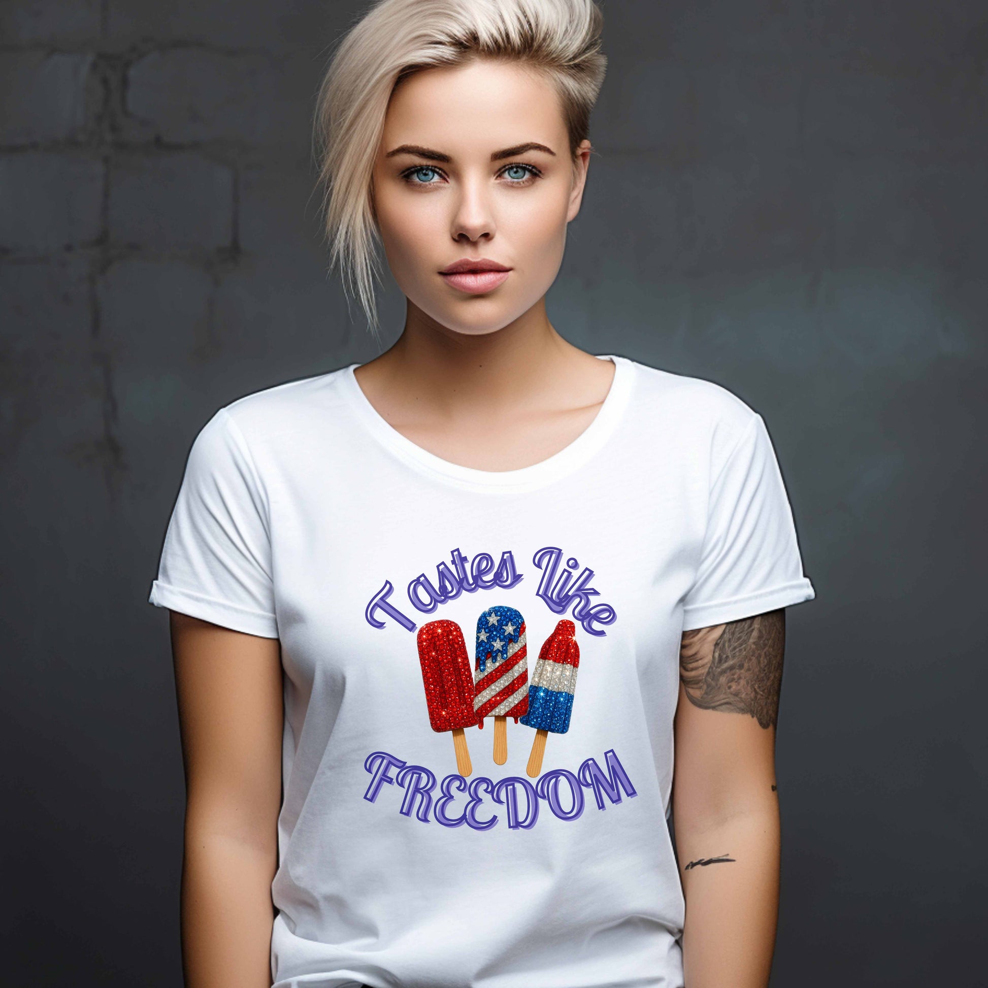 Cool down in style with Tastes like freedom shirt. Packed with red, white, and blue sweet gems. Perfect for summer and celebrating all the summer fun and holidays.